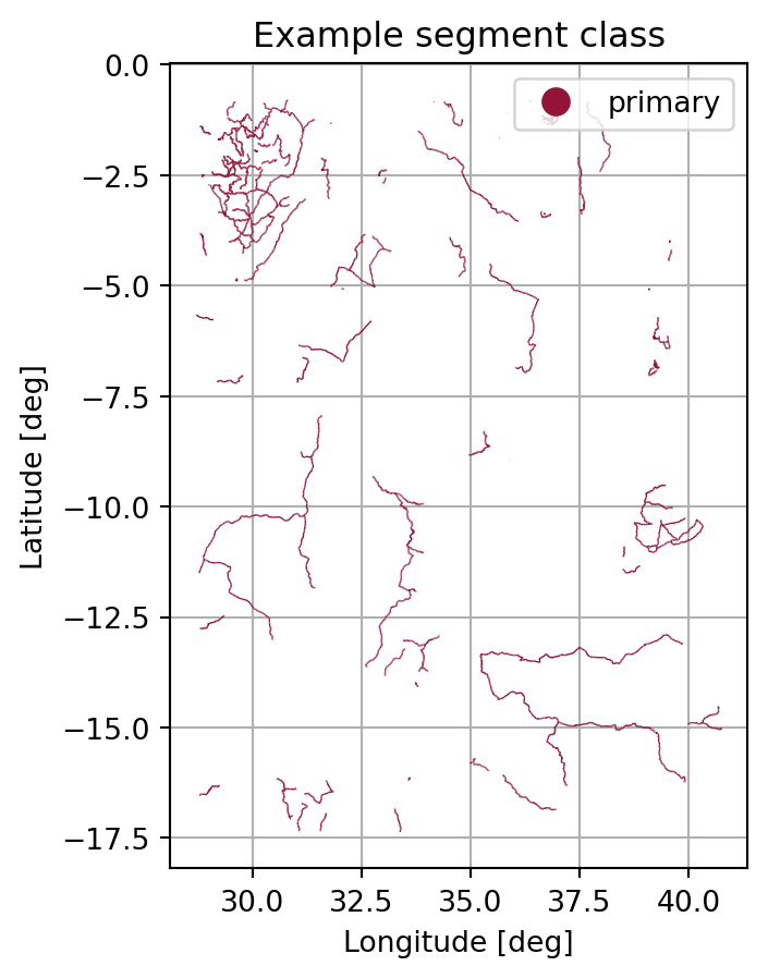 | 1 | 08497193ffffffff047fafebb6014c10 | LINESTRING (30.86457 -17.04400, 30.86431 -17.0... | road | primary |